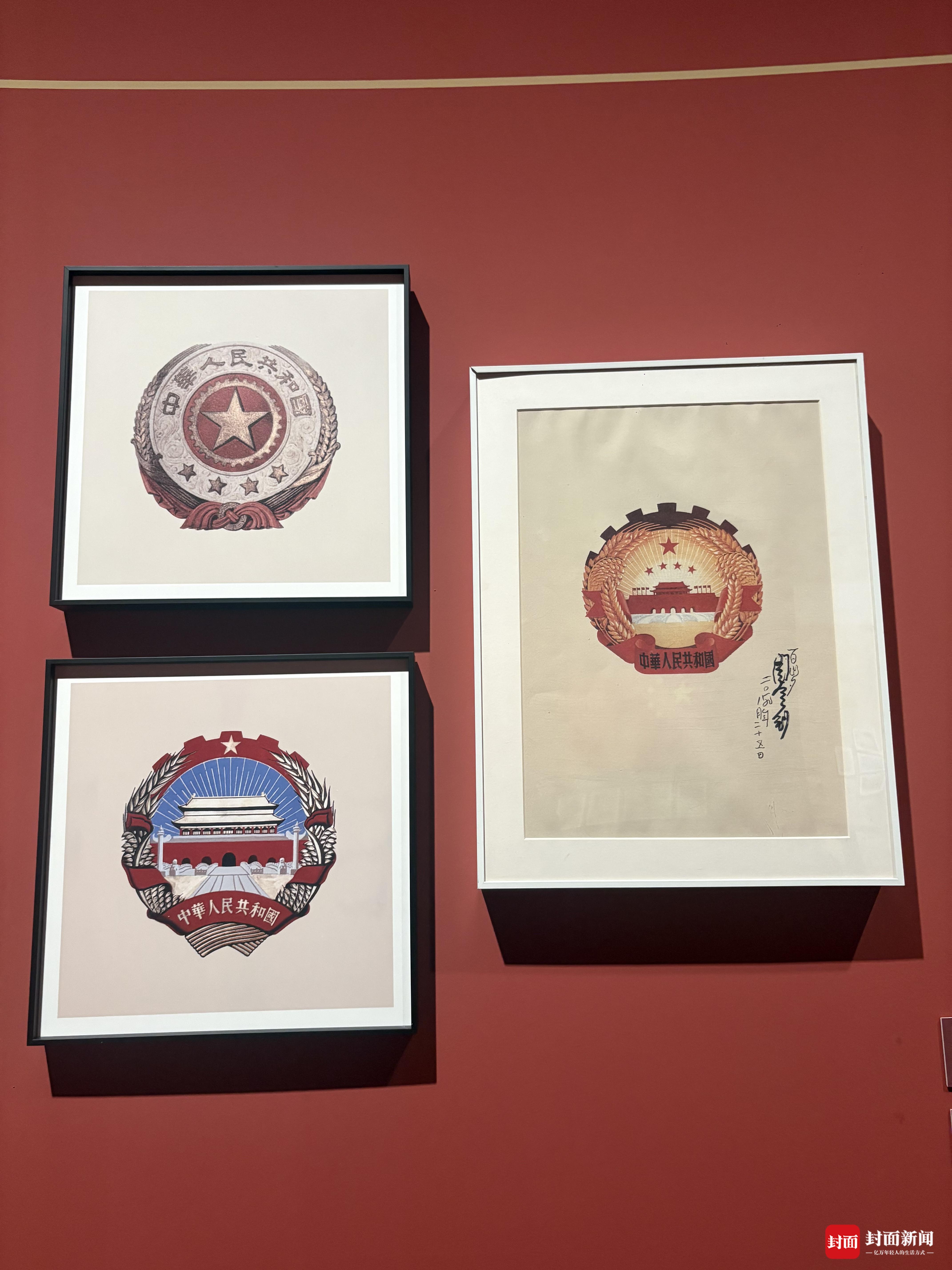 国徽和国旗的设计是这次展览的一个重磅展区。齿轮、麦穗、五角星等一系列符号语汇,使新中国设计的图形语言焕然一新,其影响也迅速由政治领域延展到日常生活。在最早各个版本的国徽设计中,记者还发现了一个熟悉的名字——林徽因。她是1950年清华大学营建系国徽设计方案的主要设计者。